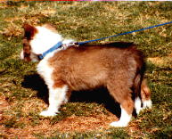 Below are photos taken of "Patches" at various stages of maturity. The 8 week photos do not show a puppy with alot of presence, do they? But, look at the difference by 5 months. At 18 months, "Patches" still looks like a promising youngster, but lacks the maturity that pulls it all together. At 4 years, she has got it all.
