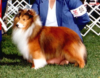 Below are photos taken of "Bud" at various stages of maturity. We fell in love with his gorgeous face when he was 6 weeks old and brought him home. As he was growing up he was often criticized as "too bitchy" and not "big enough." At maturity he is a moderate, 15 1/4 inch Sheltie - and, definately not "bitchy.".
